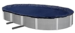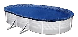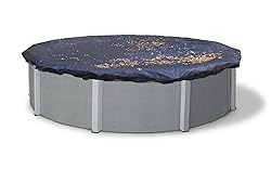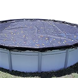 It comes in a round shape, making it suitable for above-ground pools in round or oval shapes. This cover is 8mil thick and prevents water evaporation while keeping your pool warm.
